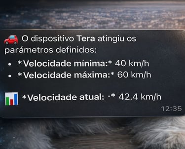 Após definir os parâmetros no App, receba notificações automáticas no seu dispositivo quando o veículo atingir os parâmetros de velocidade definidos pelo usuário.